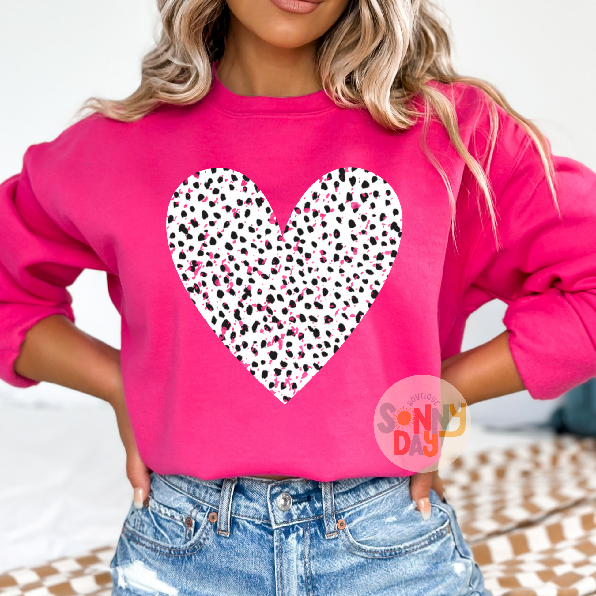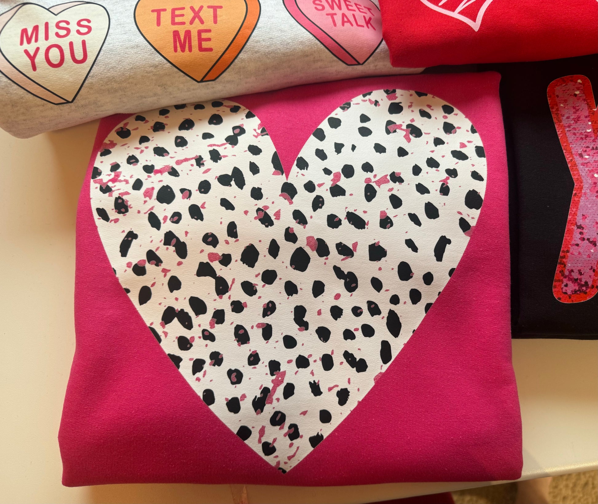 This hot pink crew features a distressed spotted design that adds a playful touch to any outfit. Perfect for year-round wear, this crew is sure to turn heads and make a statement. Add some fun to your wardrobe with the Cutie Heart Crew!
