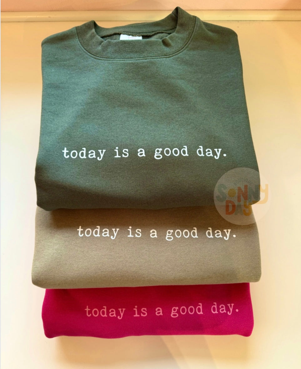 Say hello to the Good Day Crew! Feel good in its comfy crewneck and spread the good vibes with its simple design. A winning combination that's sure to make you feel good every day!