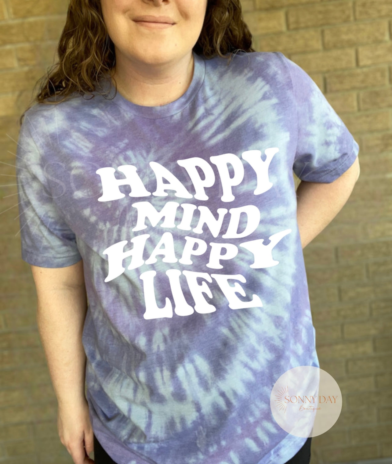 A unique style, part of the good vibes collection, this tee is a unique design that will stand out from a sea of similar designs. Made from 100% cotton, it's soft and comfortable to wear. It has a unique tie dye pattern that will make this tee stand out. The message printed on this tee is a positive affirmation of the benefits of a happy mind and a happy life.