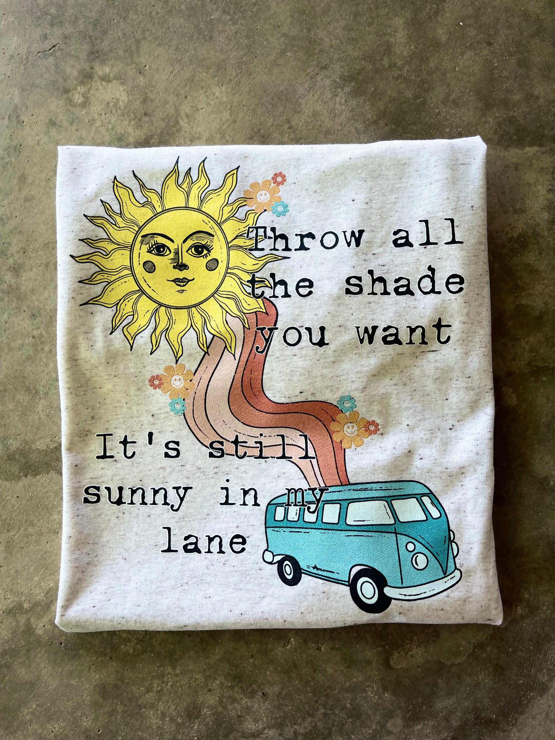 Made on an Oatmeal Triblend tee with front and back sun design.