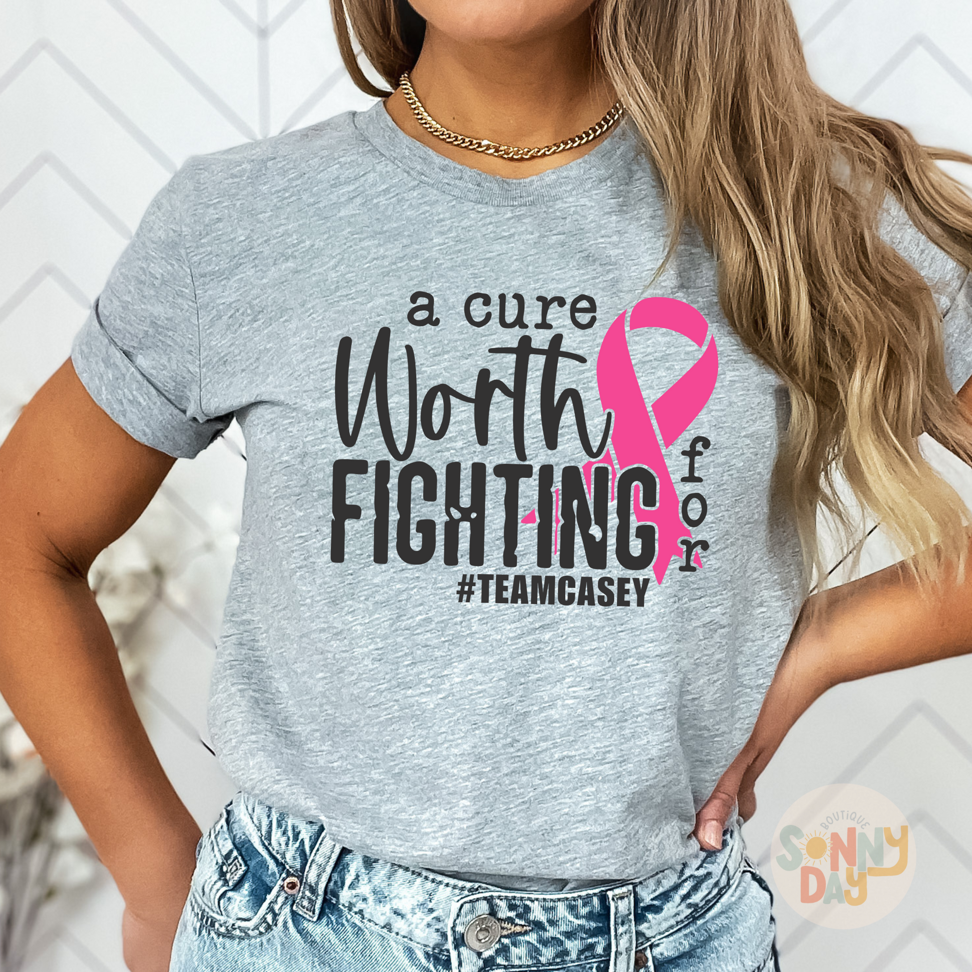 This Team Casey Shirt is part of a fundraiser for Casey Thill, who has been recently diagnosed with Stage 2B Triple Negative Invasive Ductile Carcinoma. She will soon be undergoing chemotherapy, a mastectomy, possible radiation, and reconstructive surgeries. This fundraiser is to help raise money for Casey's medical bills, missed wages during treatments, surgeries, and recovery.