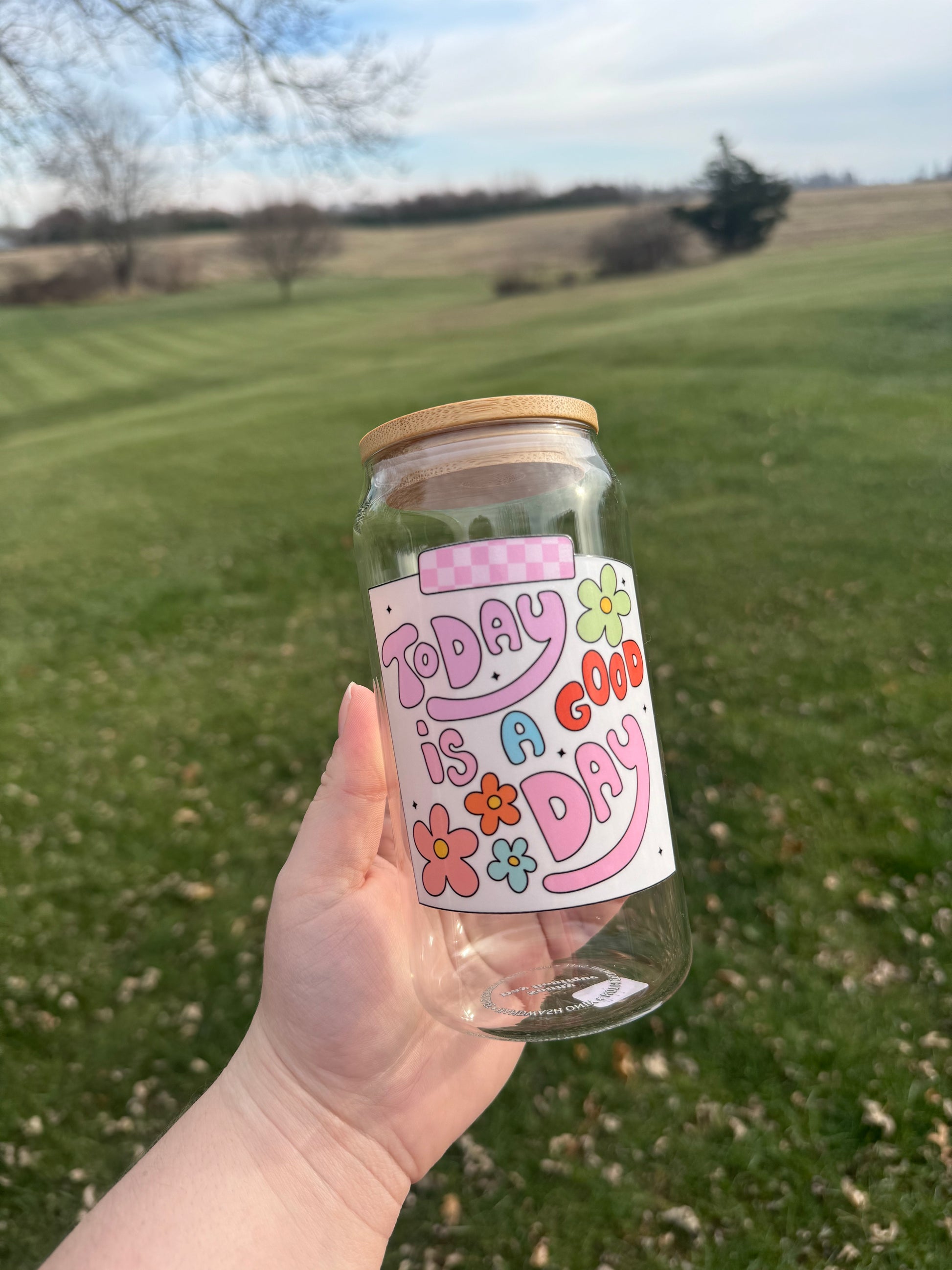 Includes 20oz glass tumbler, glass straw, and a bamboo lid.